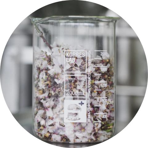 We use natural-derived solvents only. Αny solid residue of the extraction process is composted to end up back into the soil and be used as organic fertilizer, while any liquid residue is biologically treated to end up back into the water stream. A literally zero-waste operation. Our aim is to extract and isolate active herbal ingredients in order to produce clinically effective extracts of the highest quality. Grape marc from Assyrtiko variety, a typical waste by-product of Santorini wineries, becomes a powerful cosmetic ingredient rich in phenolic compounds.