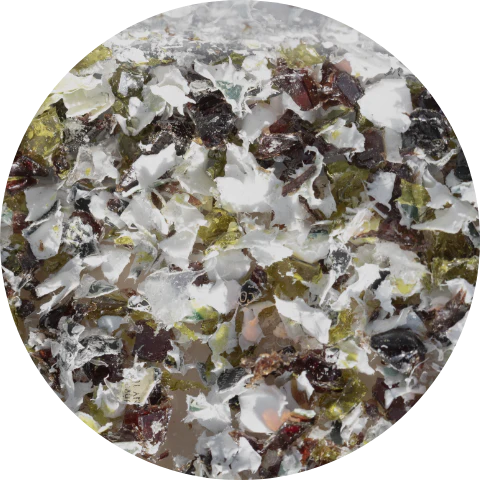 Paper reforms. All types of boxes and paper stands are used to produce merchandising, furniture, recycled carton gift boxes, and more. Glass continues its life. A perpetual material that always finds its way back to usage.