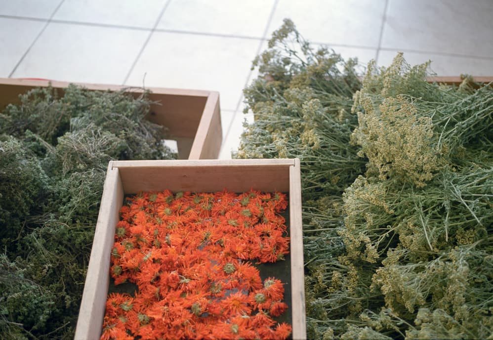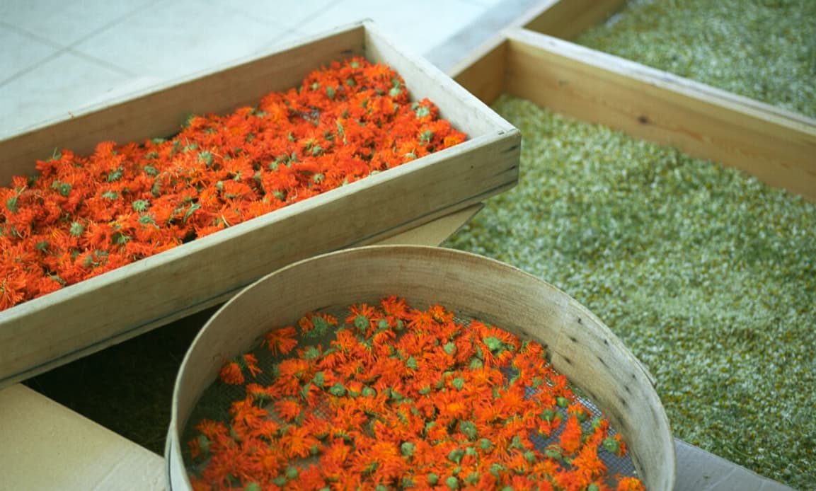 The organic calendula flowers are hand picked from April to October and transferred to the KORRES Extraction Laboratory.