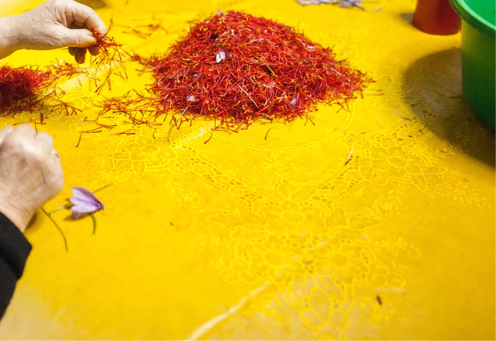 After all the flowers have been collected, the fields look empty, but by dawn Krocus blooms once again, blanketing the fields in these rare beautiful purple flowers. Petals are separated by hand from the Saffron stigmas and stamens, immediately after being picked, followed by the drying process of the stigmas, ensuring that the Saffron is at its highest potency.